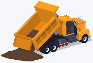 Песок, щебень, гравий, керамзит, гранитный отсев, асфальтовая крошка, пескогрунт, торф и другие сыпучие грузы.
